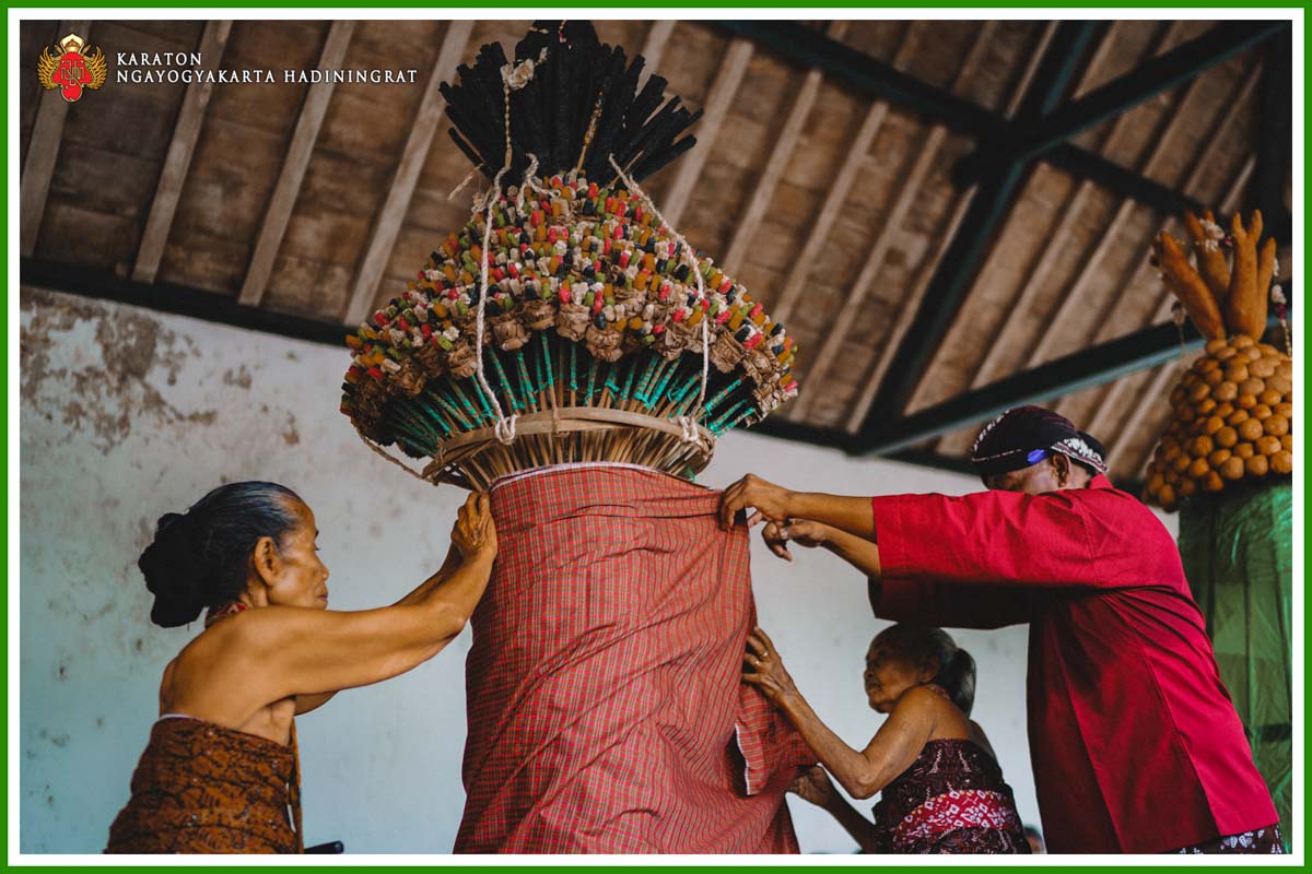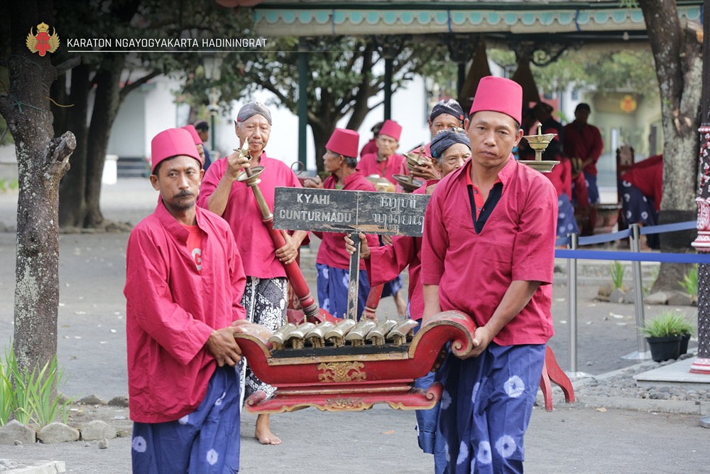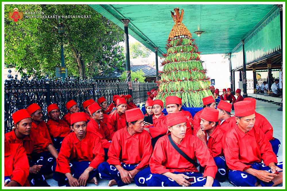 Dalam prosesi ini, keraton mengeluarkan tujuh Gunungan, terdiri atas tiga Gunungan Kakung, satu Gunungan Estri, satu Gunungan Darat, satu Gunungan Gepak, dan satu Gunungan Pawuhan, yang kemudian dibagikan di tiga lokasi, yaitu Masjid Gedhe Kauman, Pura Pakualaman, dan Kepatihan. Gunungan tersebut menjadi simbol rasa syukur atas rezeki Tuhan serta wujud kebersamaan antara keraton dan rakyat (Ahmad et al., 2021).