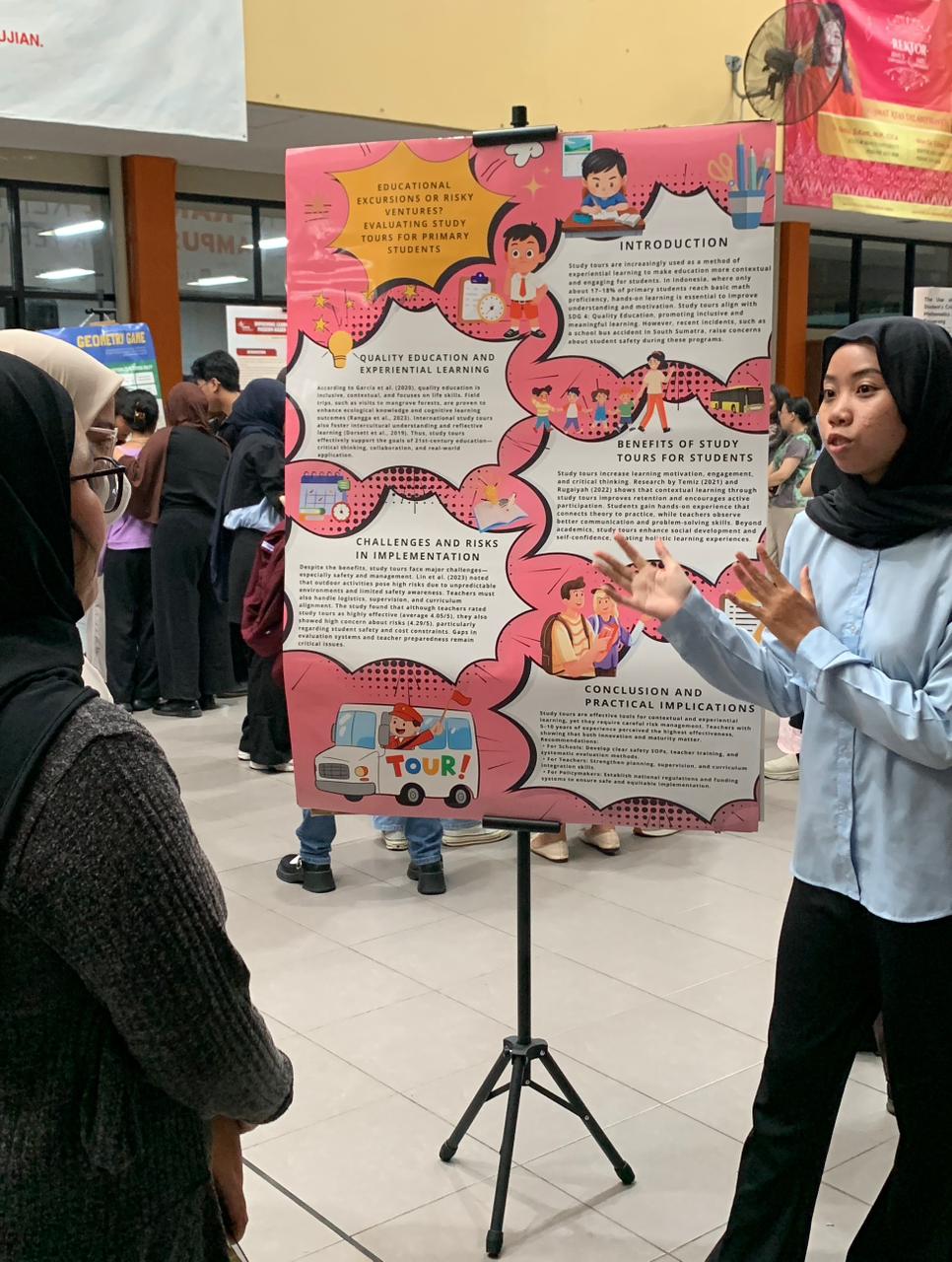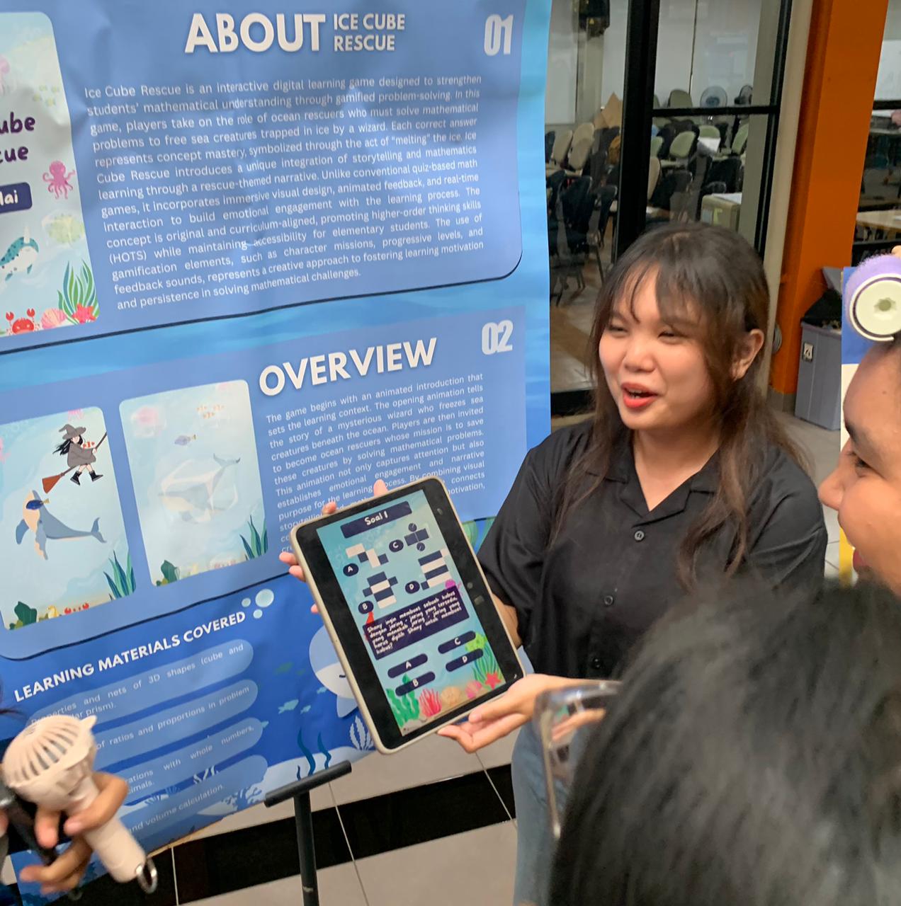Pada kategori Research Presentation, mahasiswa memaparkan hasil penelitian mereka di hadapan para audiens. Sementara itu, peserta Research Poster dan EduTech Product menampilkan karya mereka di area Hall. Pengunjung dapat berinteraksi langsung dengan peserta, melihat penjelasan di balik setiap karya, hingga mencoba berbagai produk inovatif yang ditampilkan.